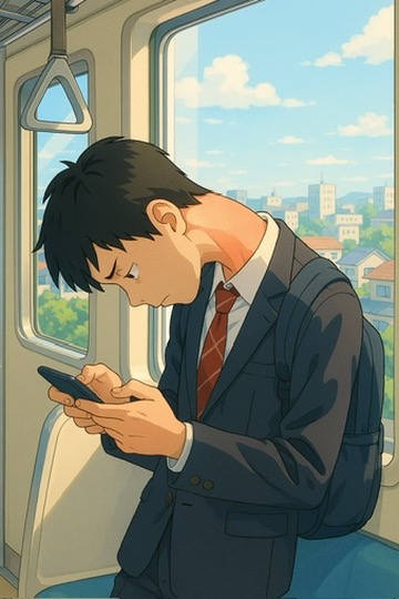 もっと、ひどいケースで言うと、↓このように、首が下に折れ曲がっている姿勢をキープしている光景も電車の中ではよく見受けます。